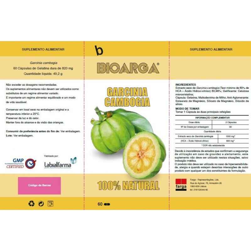 Suplemento alimentar à base de Garcinia Cambogia que ajuda a reduzir o apetite e a acumulação de gordura.