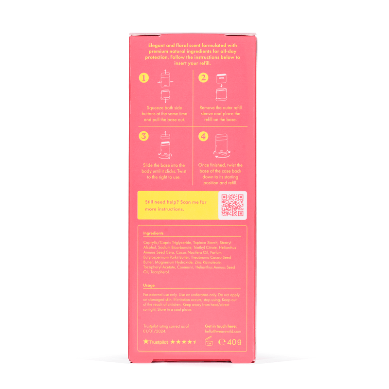 WILD, desodorizante natural, sem alumínio, 100% vegan e recarregável. Starter Kit composto pela Caixa e Recarga com aroma de Flor de Cerejeira. Reinventa a tua experiência no cuidado pessoal com os desodorizantes naturais WILD