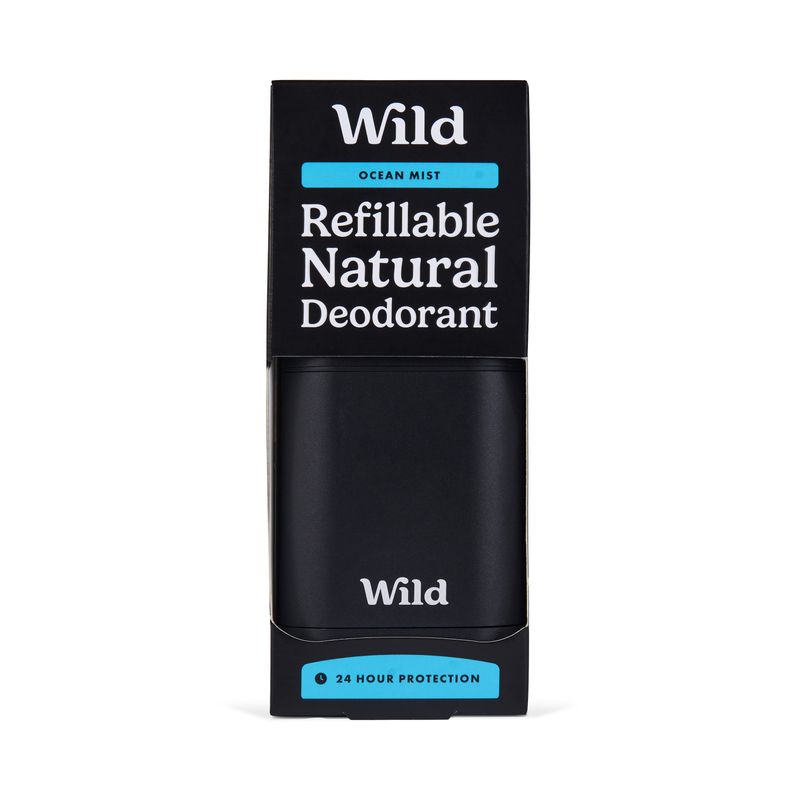 WILD, desodorizante natural, sem alumínio, 100% vegan e recarregável. Starter Kit composto pela Caixa e Recarga com aroma de Maresia. Reinventa a tua experiência no cuidado pessoal com os desodorizantes naturais WILD